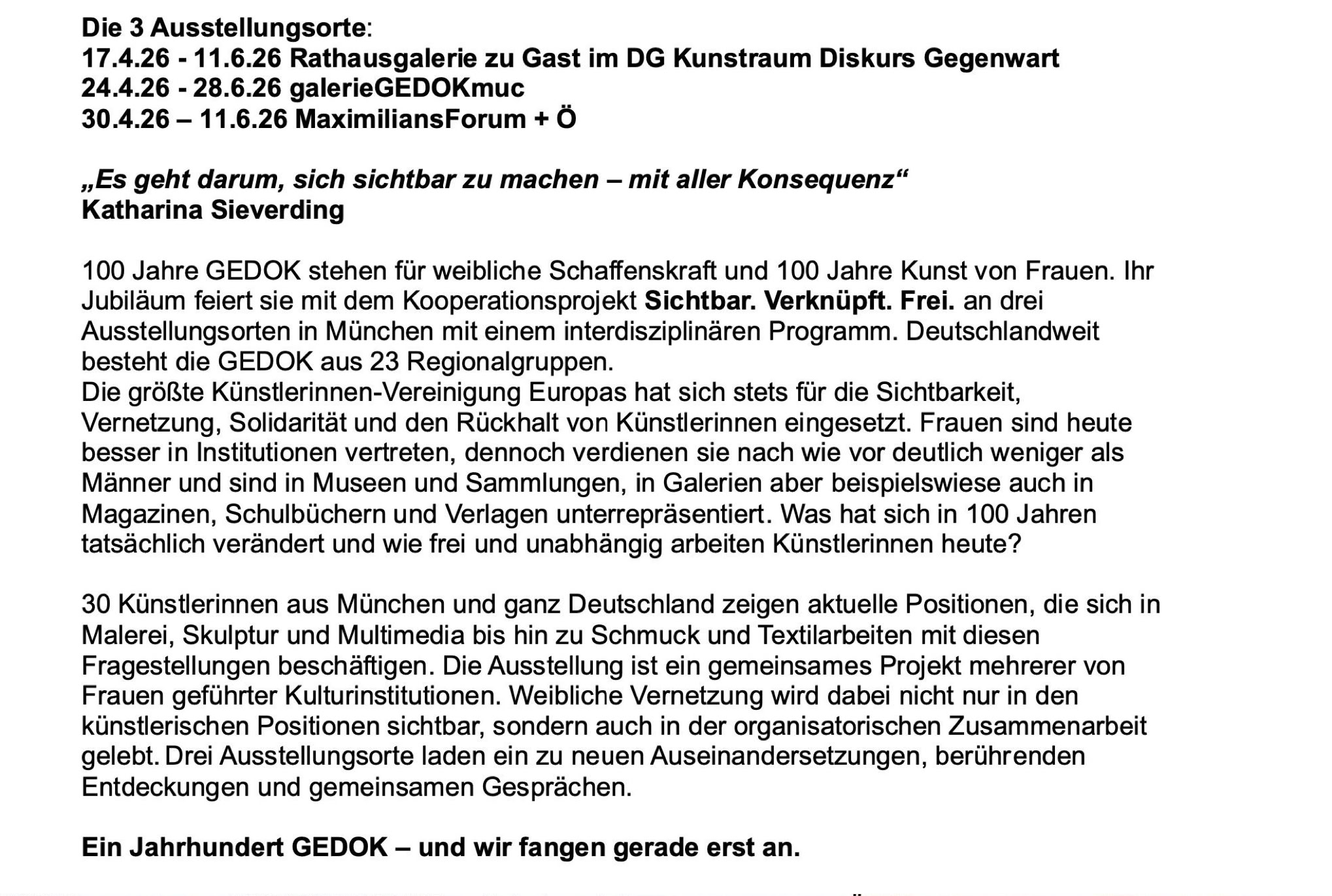 Eröffnung: 16. April Kunstraum, Finkenstraße 4 80333 München